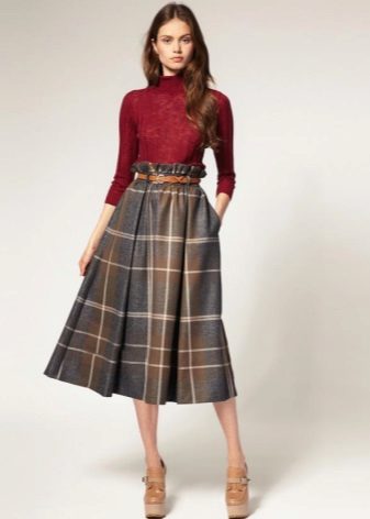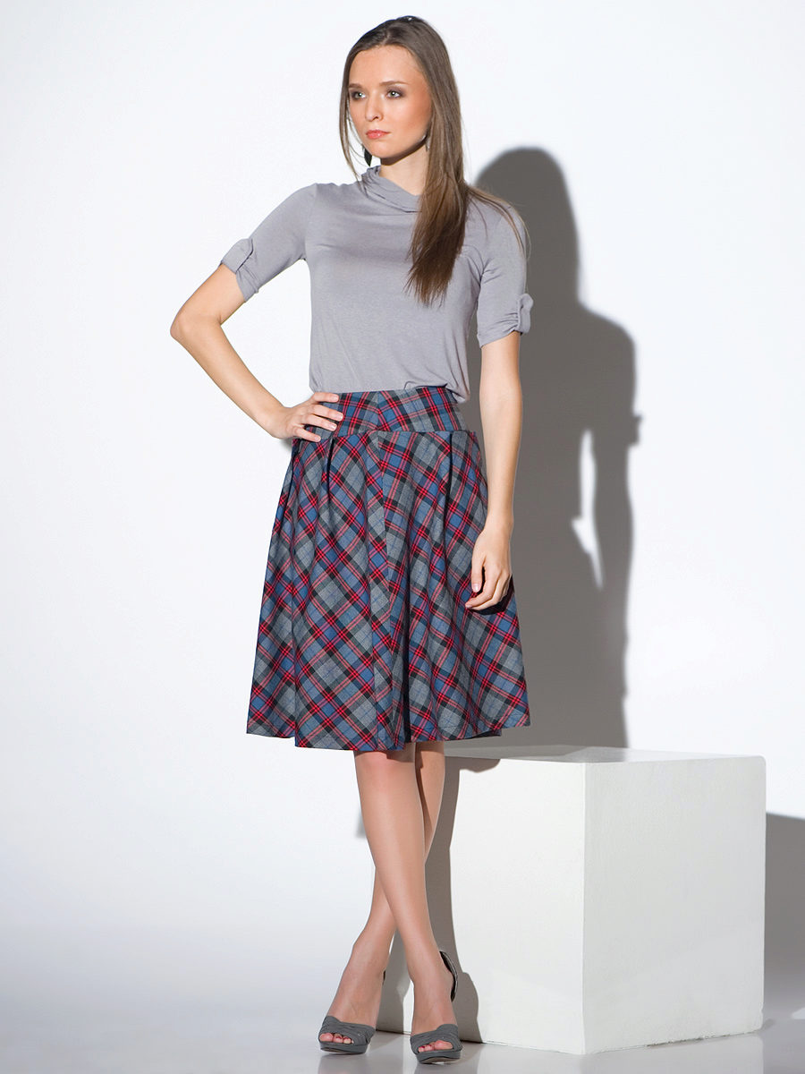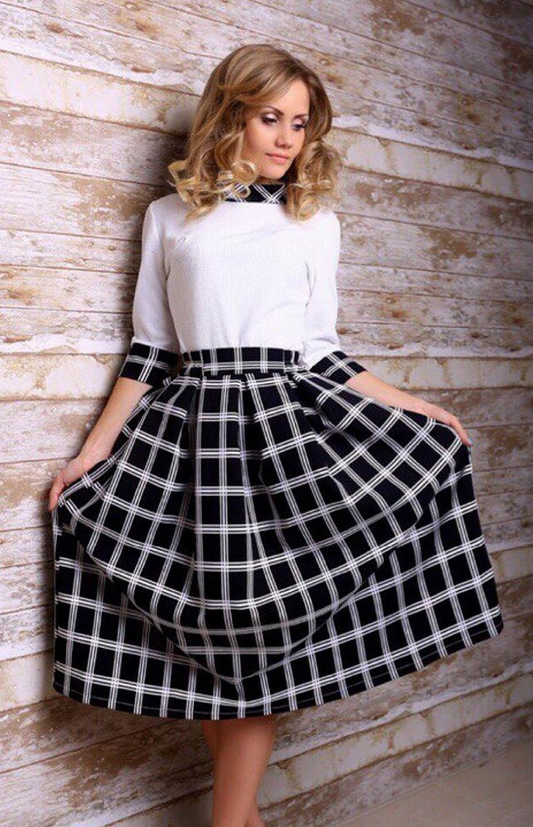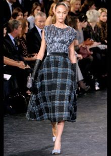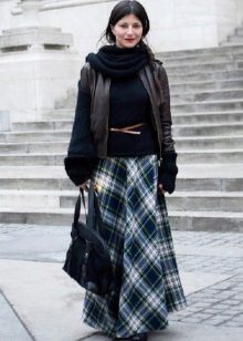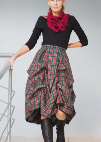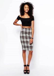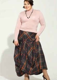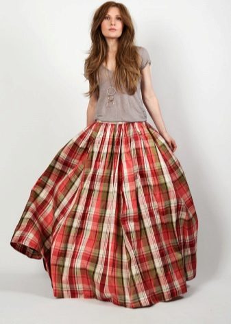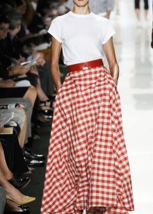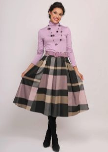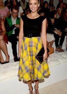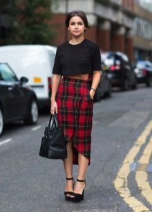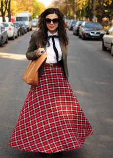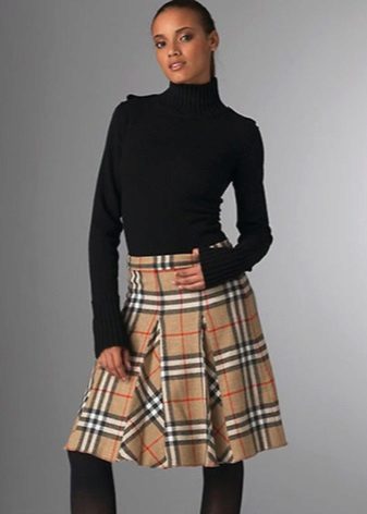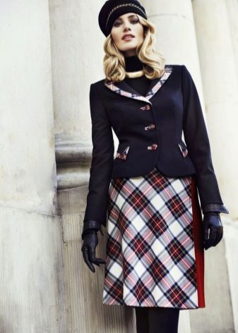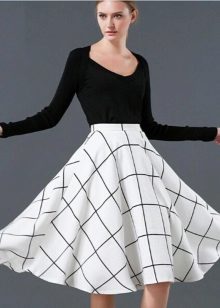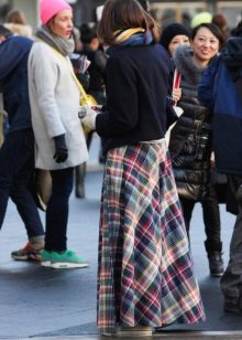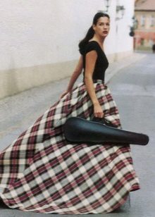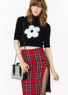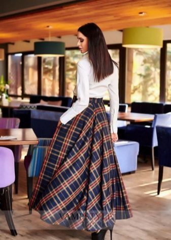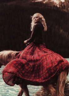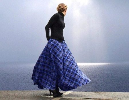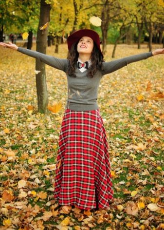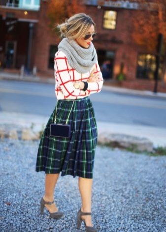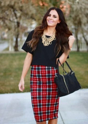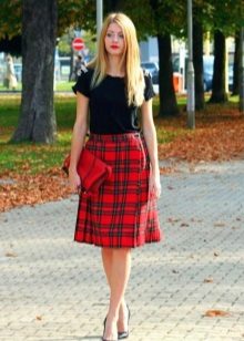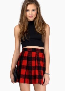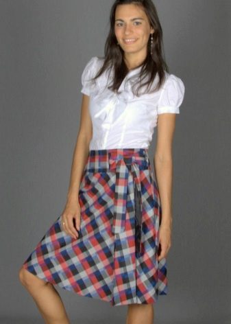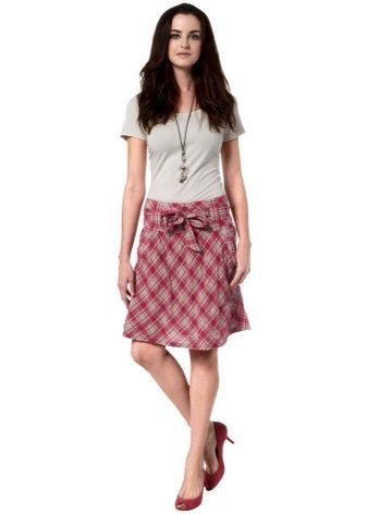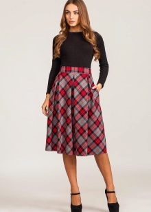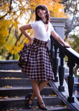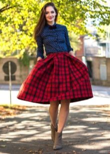 The style may be different. A checkered pencil skirt is most often associated with a business style. Flared skirt is suitable for every day, and for a festive event, and as a school clothes.