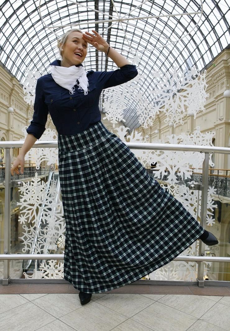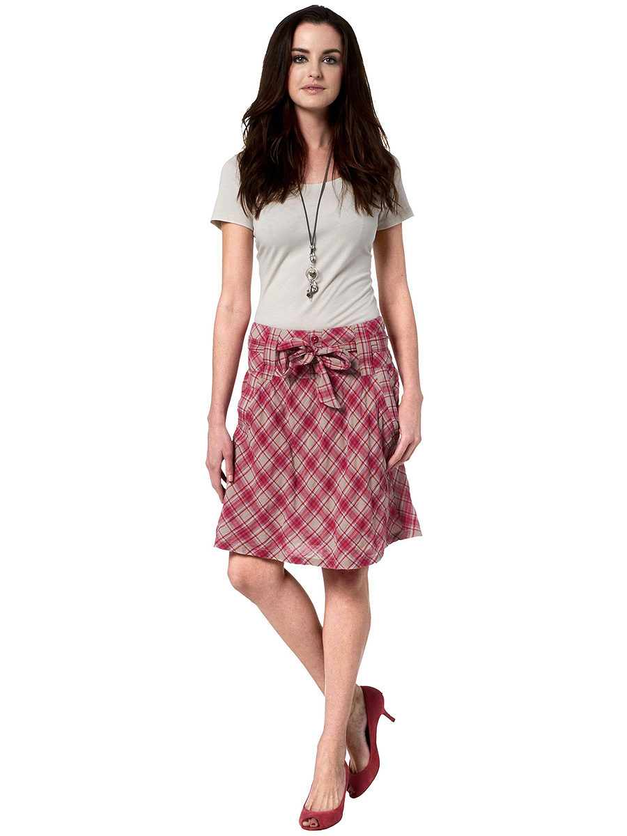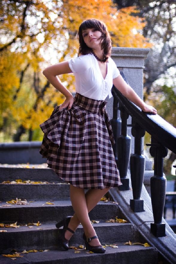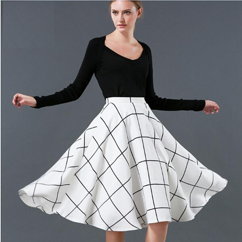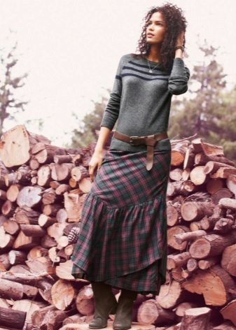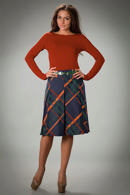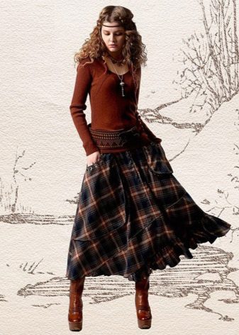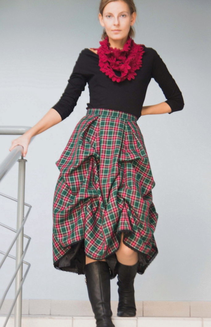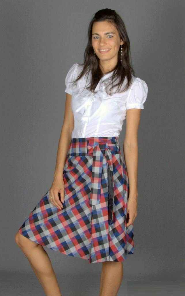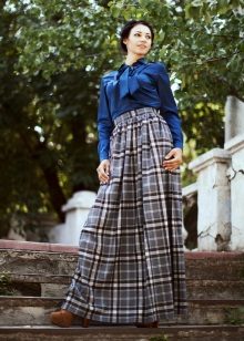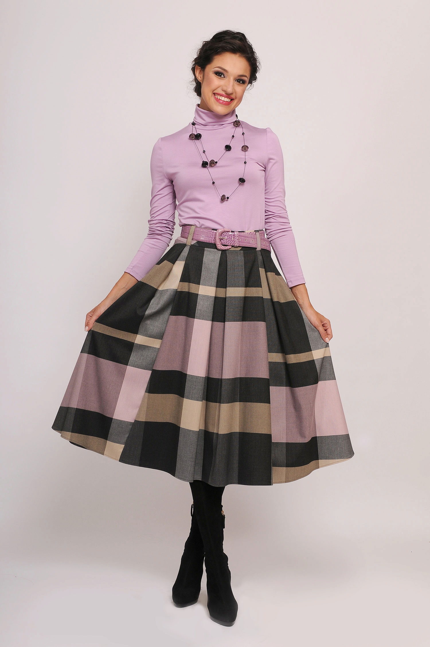 The style may be different. A checkered pencil skirt is most often associated with a business style. Flared skirt is suitable for every day, and for a festive event, and as a school clothes.