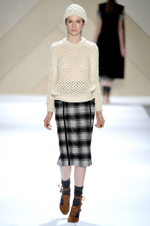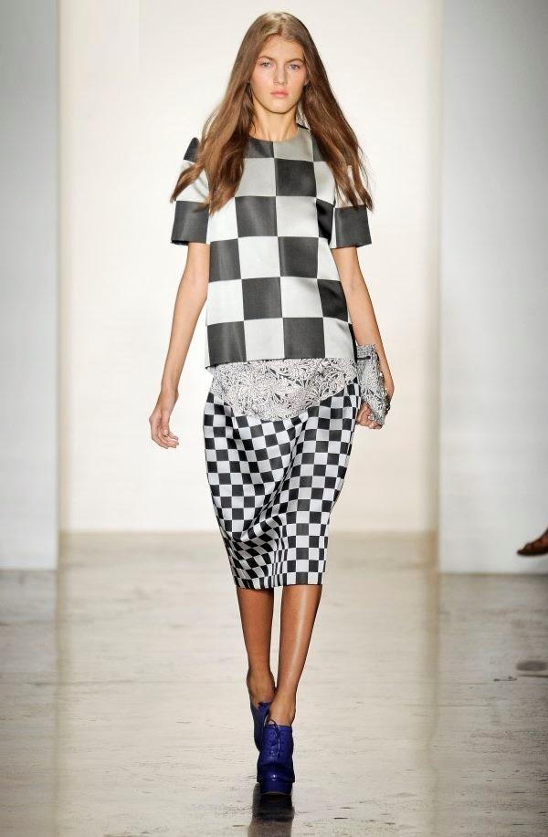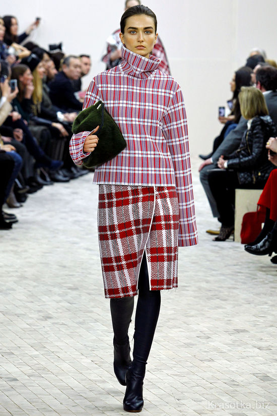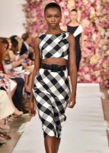 A combination of things with different cage size looks very interesting, for example, a skirt in a large cage, a jacket in a small one.