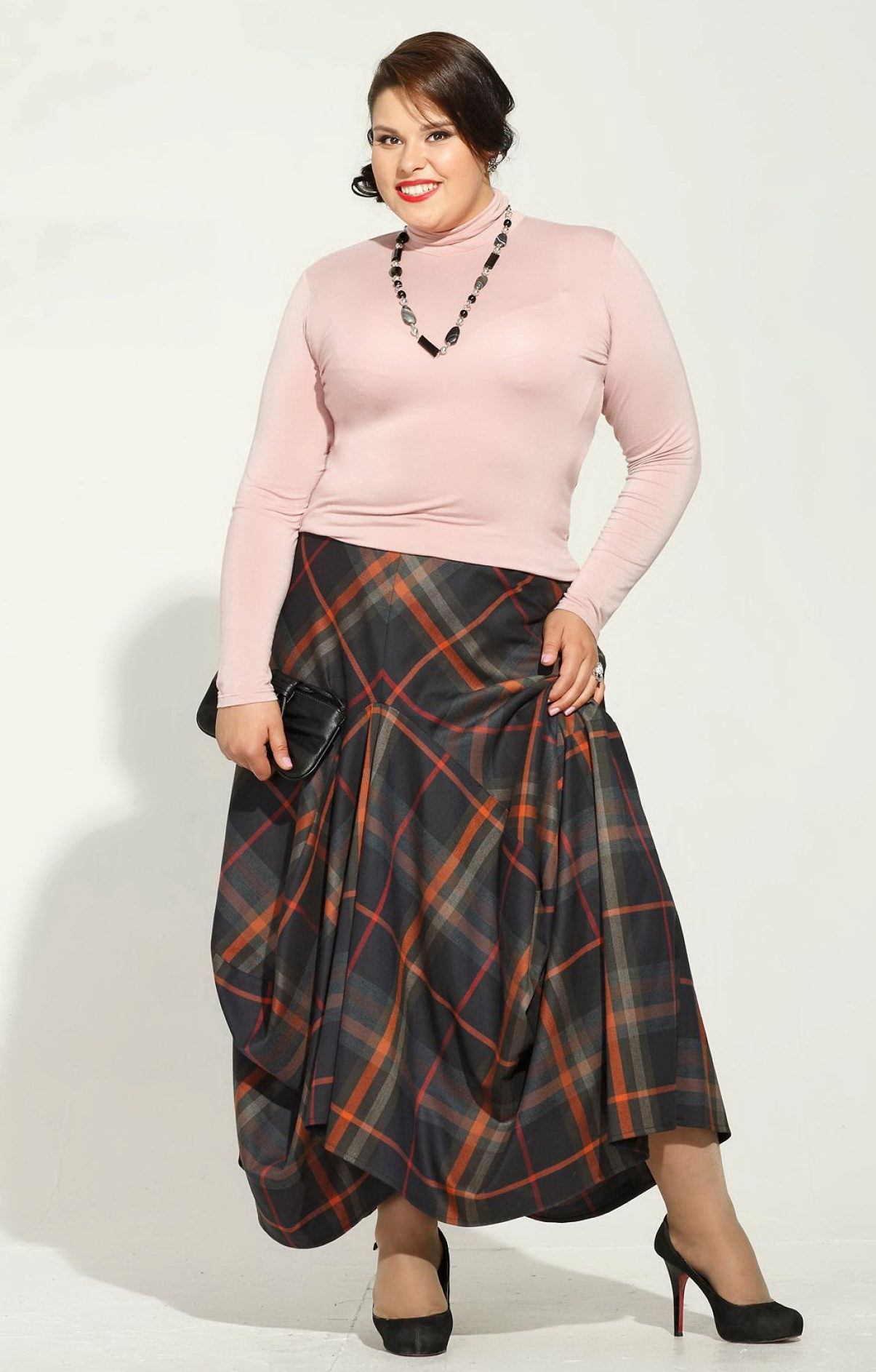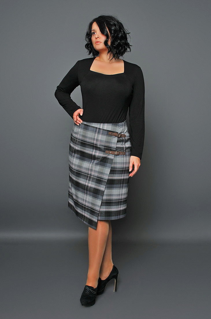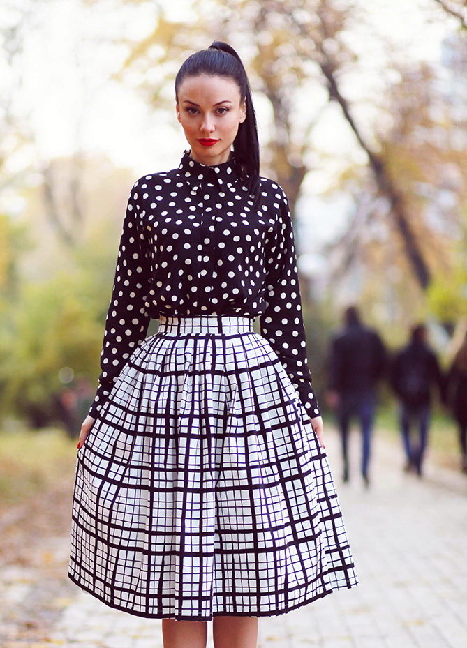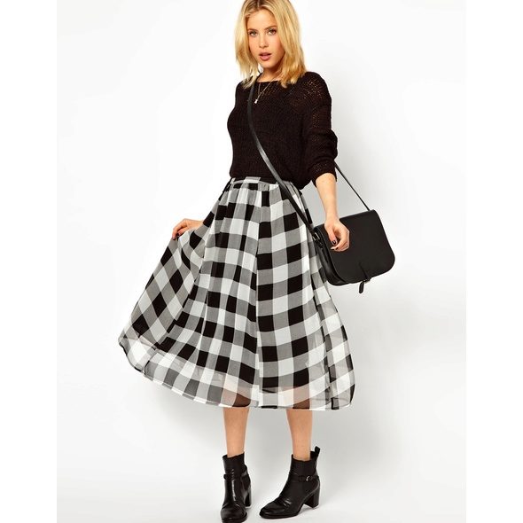 Checkered print is one of those unique designs that looks absolutely harmonious on things of different sizes. Moreover, a correctly selected checkered skirt can visually correct some figure flaws.
