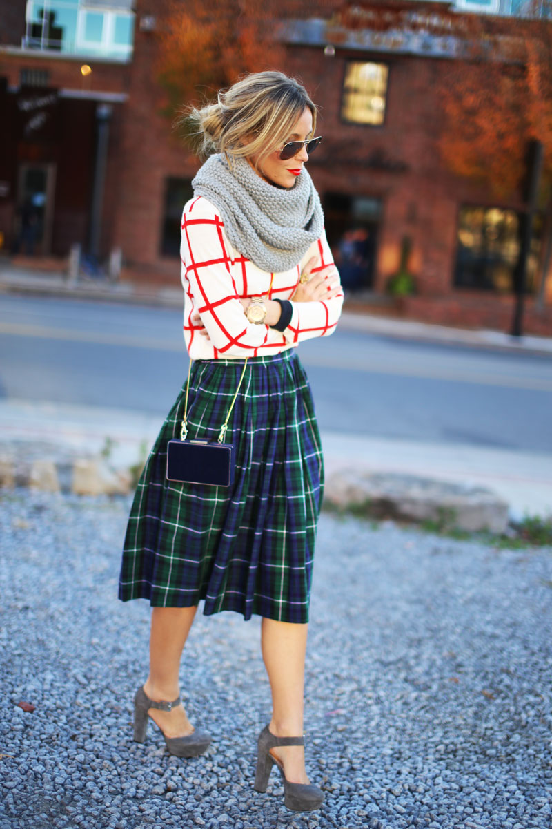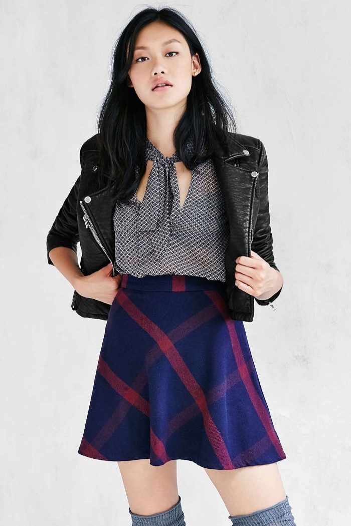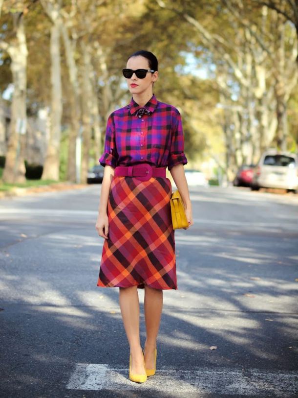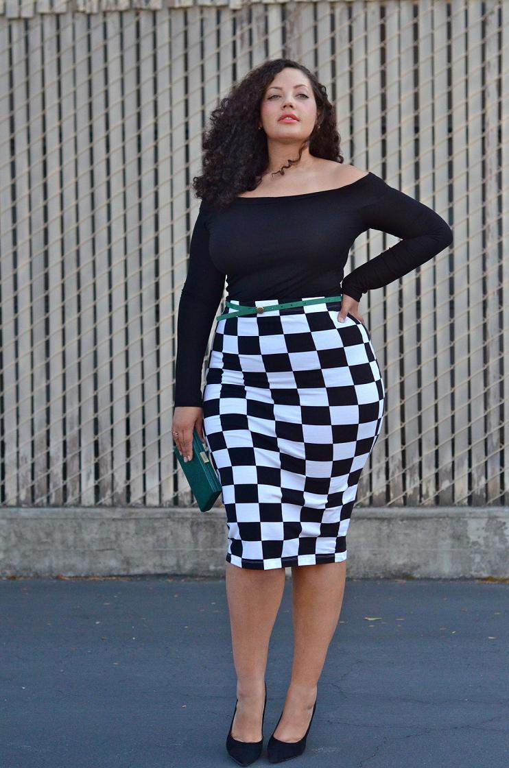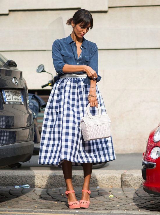 Checkered print is one of those unique designs that looks absolutely harmonious on things of different sizes. Moreover, a correctly selected checkered skirt can visually correct some figure flaws.