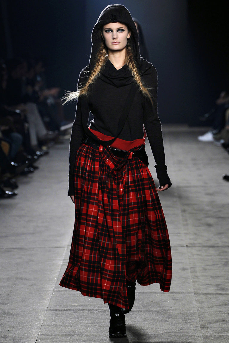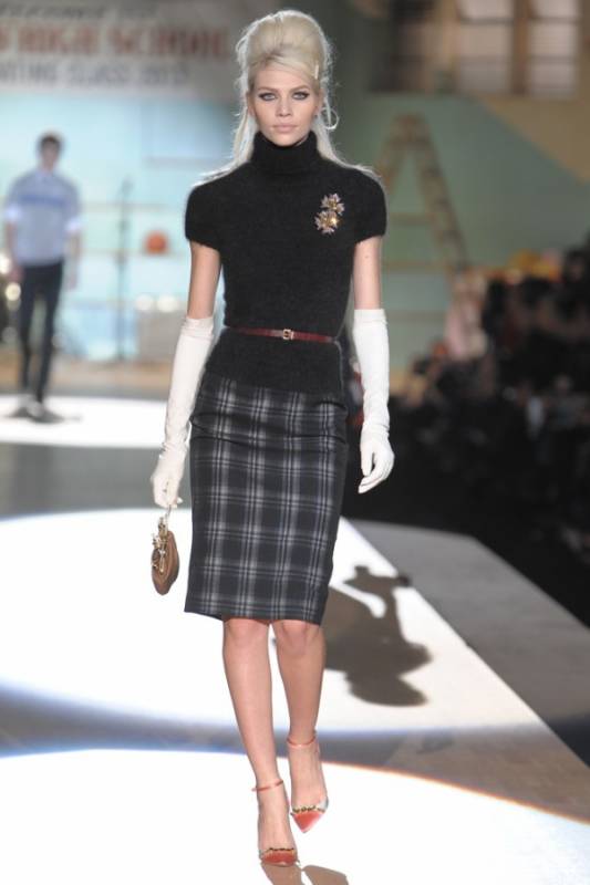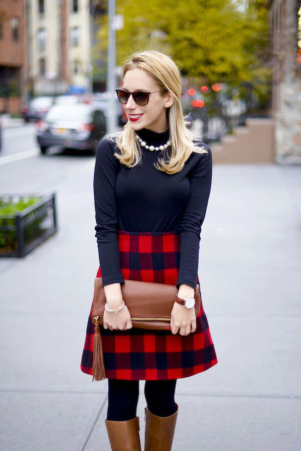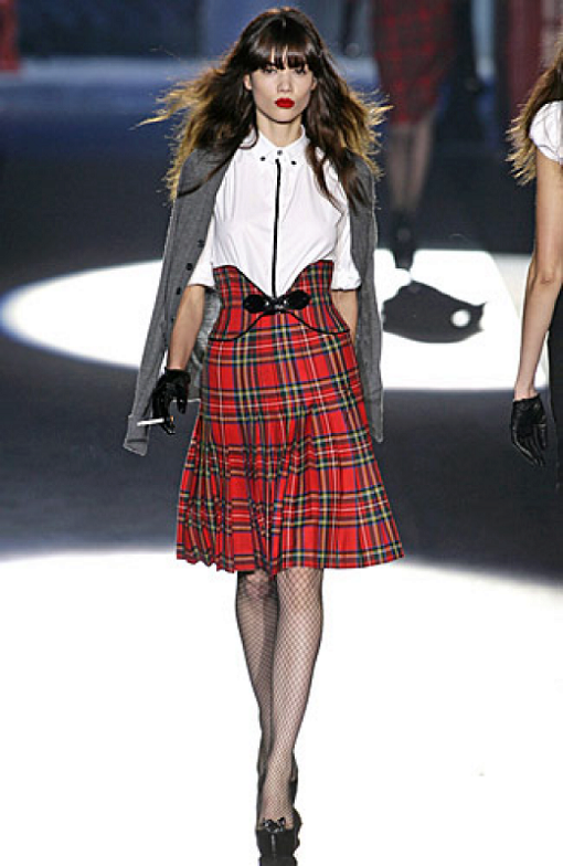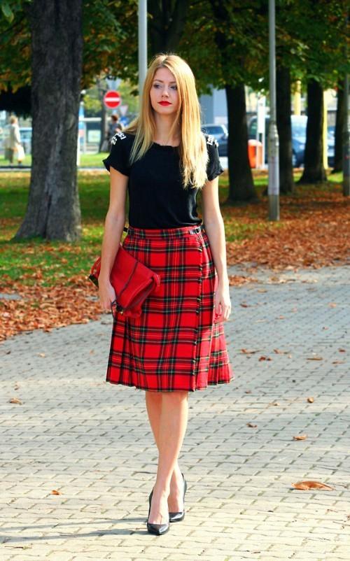 - Youth option: bright red skirt in a black check + black jumper + red shoes or boots with heels. Very bold and flashy image!