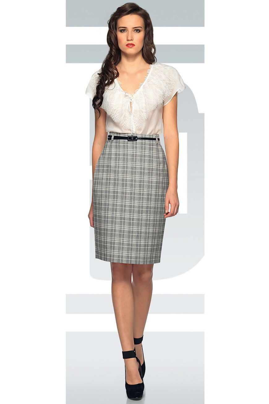 This skirt looks great complete with classic white, black, cream blouses. A beautiful addition to the image will be a jacket of the same color.