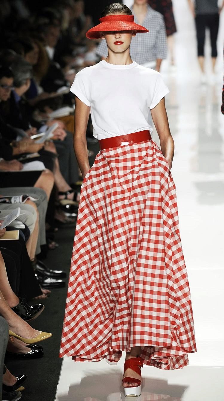 The red cell is not only used in casual wear.A pleated skirt with a red-black or red-green check is an essential element of school clothes in some countries of the world. This skirt is successfully combined with a white shirt and vest, decorated with the same print.