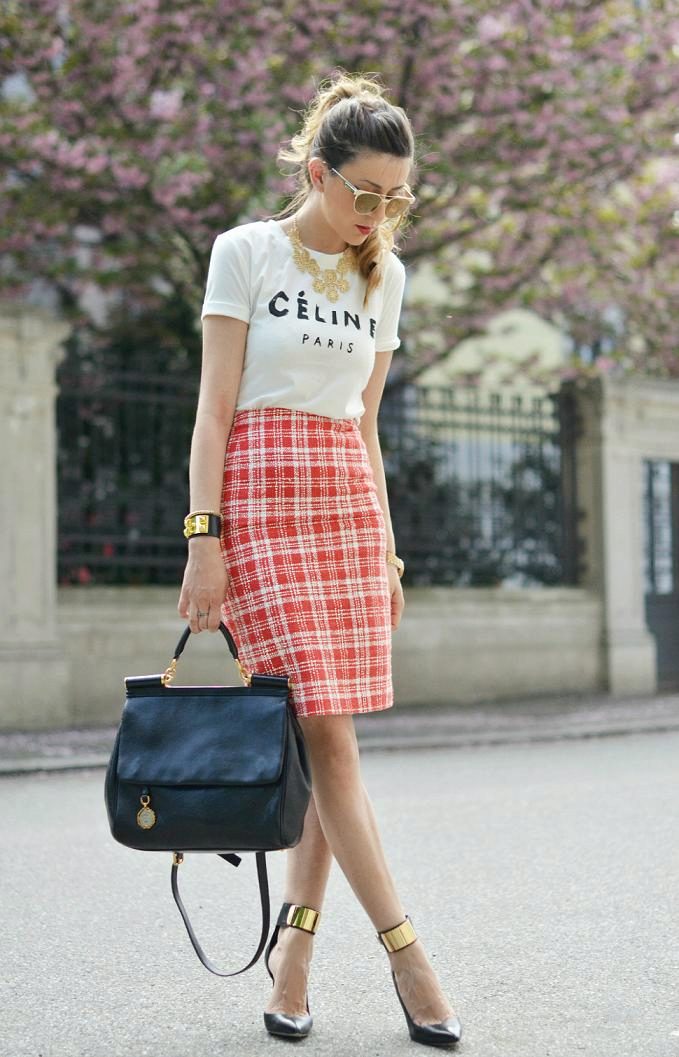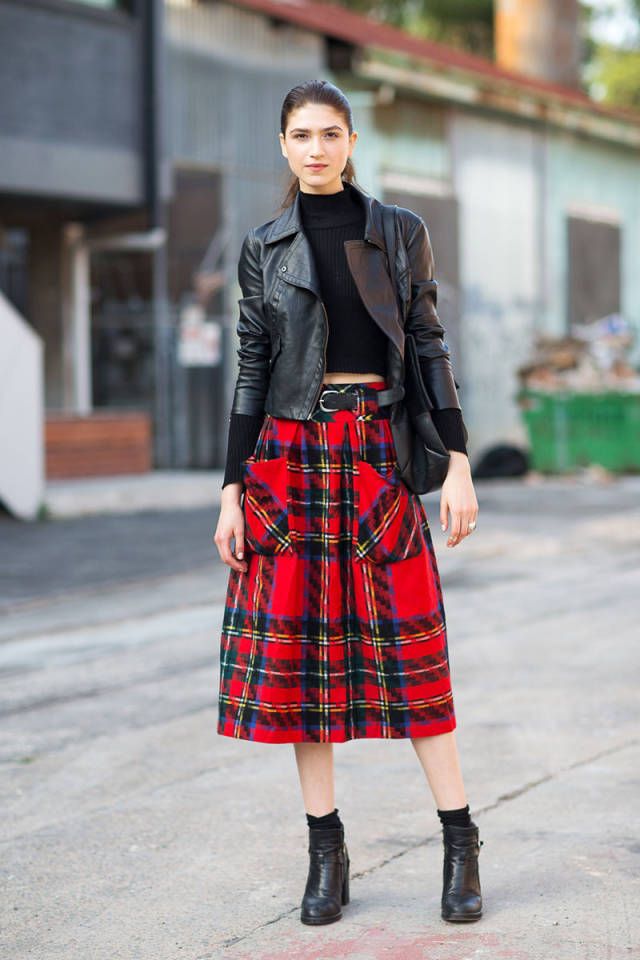A checkered skirt of medium length is the most versatile option that is suitable for any occasion.
