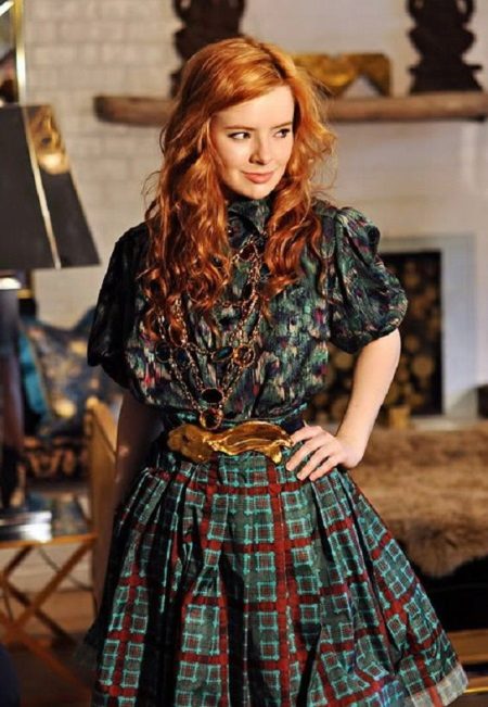 Red skirt itself is a bright accent in a dress. The cell will help make the image even more expressive.