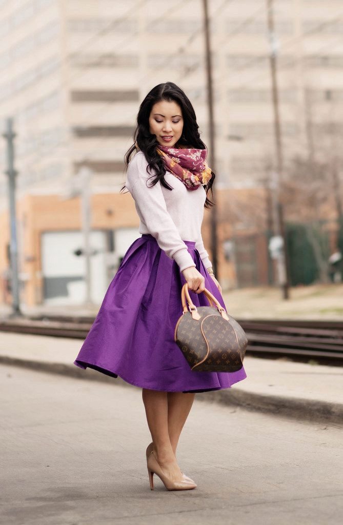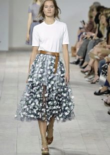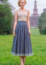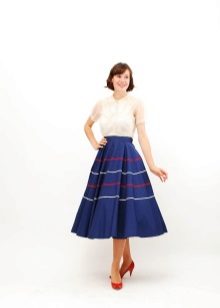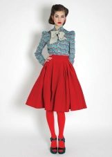 Among the stylish skirts, the style bell or sun flare is very popular. To give the model pomp, often wearing a petticoil petticoat. The choice of color for the petticoat may differ from the color of the skirt itself. Original combinations of tones give charm and charm together.