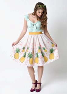 Although skirts in the style of style are not in great demand among fashionistas, but, nevertheless, every girl should have this element of wardrobe. Today it is very fashionable to organize a variety of activities in this style: a party, birthday or wedding. To create an effective image in the style of style, it is enough to put on the appropriate skirt, to make a distinctive make-up and hairstyle.