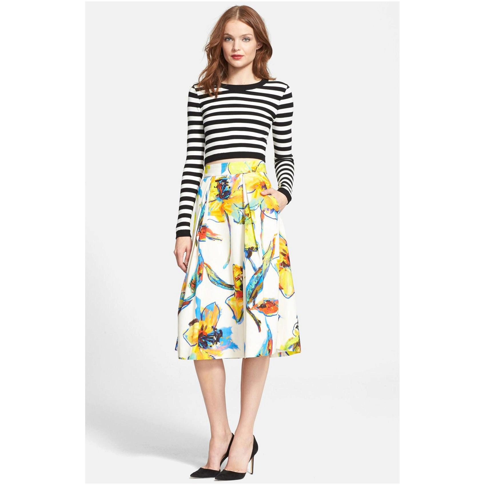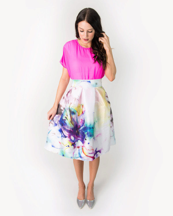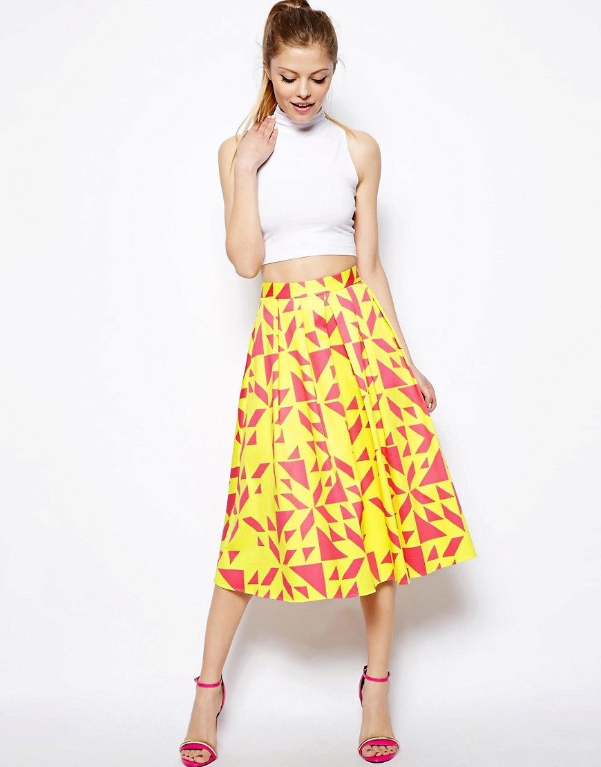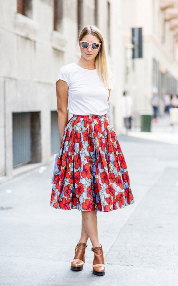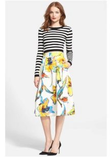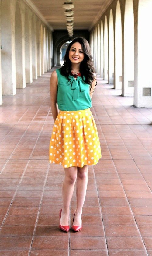 Bright colors and rich prints are often used when sewing stylish skirts. Flower designs are in great demand, as well as a classic square, strip or polka dot. A skirt with such a cheerful coloring will help to raise the mood of others and show their individuality in creating a spectacular bow.