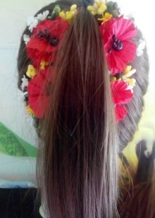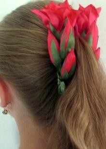 It will look very beautiful "harness", made on the basis of the horse's tail. To do this, how to comb your hair, and then twist them into a bundle. To pin the tail you need, of course, "Banana". At the tips of her hair can be a little messy, but do not worry, it only adds to her tenderness.
