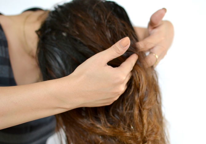 - Carefully comb your hair so that there are no tangled strands, and tilt your head down slightly.