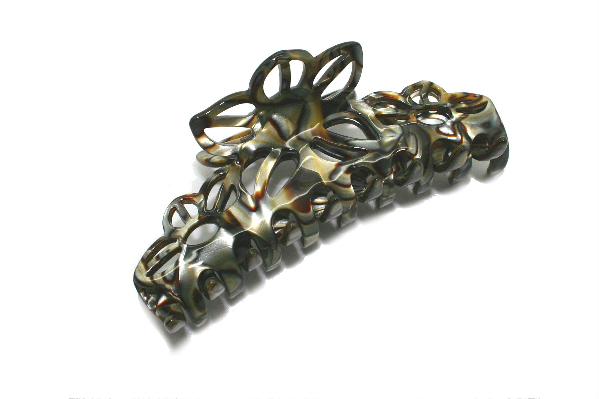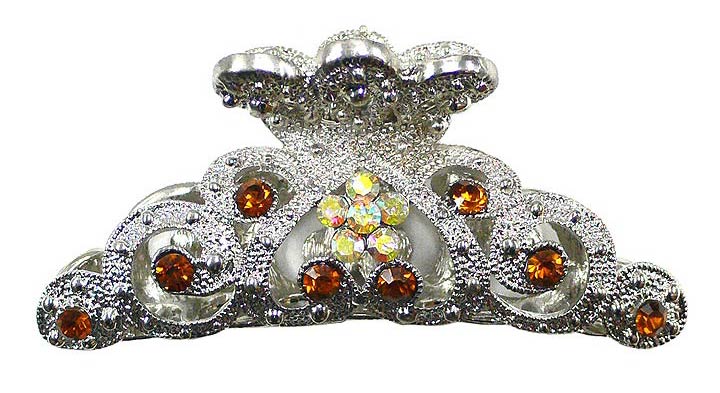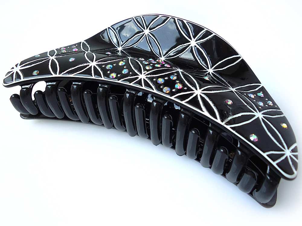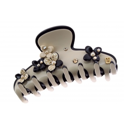 Any woman will transform with an exclusive crab from the famous elite French brand Alexandre de Paris in the form of a mother-of-pearl flower adorned with a scattering of Swarovski crystals.