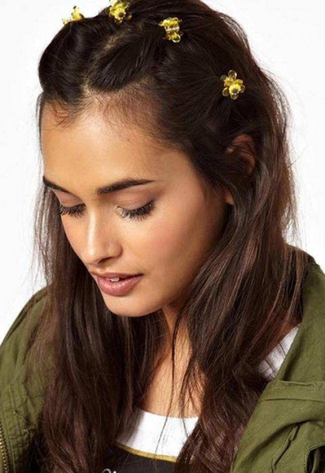 Often hairstyles with small-sized crabs make little girls.They are also in demand among teenage girls who want to stand out, show their individuality.