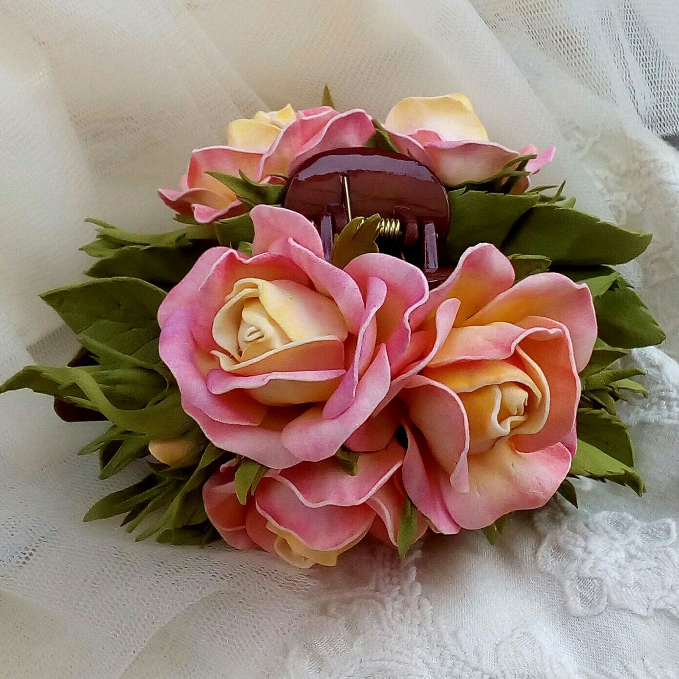 Also create a unique look with a hairpin made of foamiran, a foamy decorative material that is easily processed. From it, you can create whatever your heart desires: from colors to futuristic figures and patterns.
