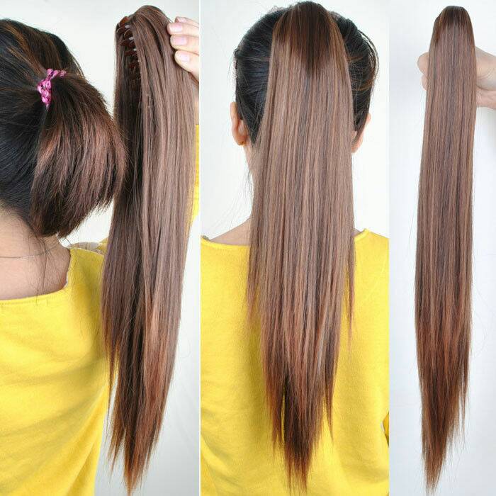 Another way to drastically change your hairstyle using the same crab hairpin is to use a model with false hair. At the same time, an artificial “tail” should be chosen to match your own strands. By attaching it, you can hit your friends and acquaintances with a completely new way and with your naked and regrown curls.