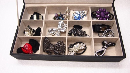 Here, each woman of fashion decides how conveniently to store, ideas can be very diverse: from simple boxes and drawers to special decorative buckets and organizers for hair ornaments.