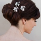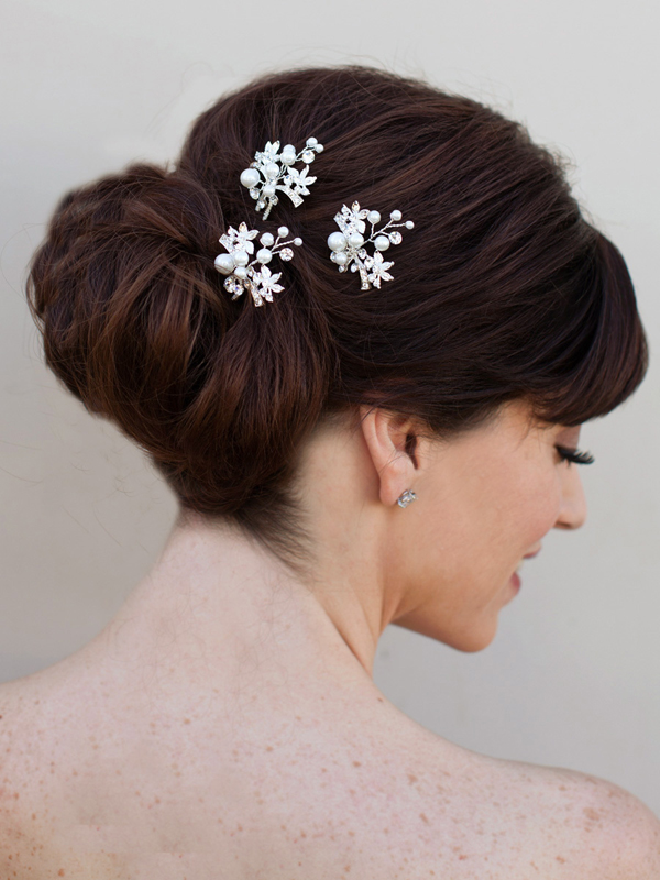 This accessory often comes to the aid of professionals who are working to create hairstyles for the wedding. There are long-known familiar studs that are designed to fix the strands in the desired position and remain invisible. As a decor, beautiful accessories decorated with pearls or rhinestones can be used. Studs are an indispensable attribute if you need to fix the veil.