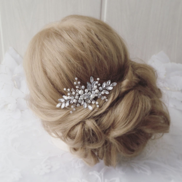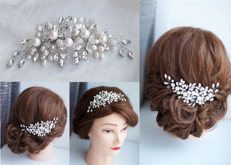 Beautiful hairpins with teeth like a comb are often used to decorate wedding hairstyles. Abundantly decorated with decorative details, this accessory will be an excellent addition to the wedding image. This decoration can be fastened in front as a tiara, also a hairpin-comb will decorate the curls gathered from behind or help to secure the veil.