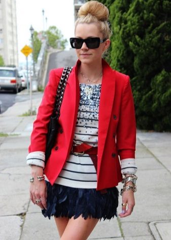Red jacket is able to make an image of a tempting and sexy. Despite the fact that red models are more common in the wardrobe of business women, they also easily complement the evening look. To emphasize the depth of red, try to combine it with a neutral color scheme.