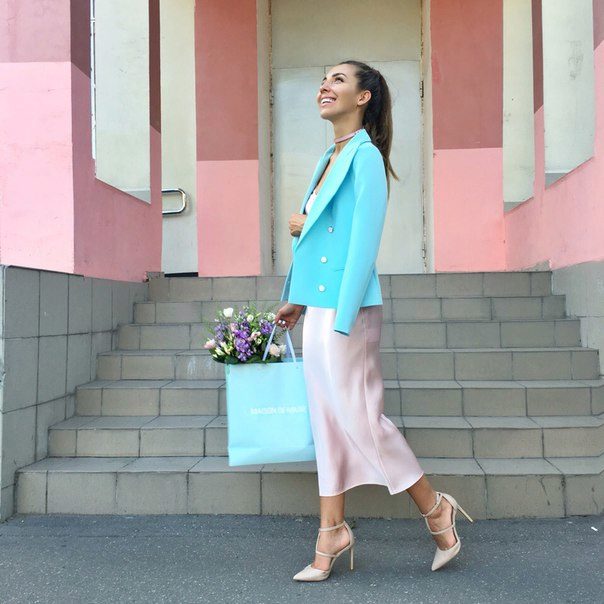 Blue goes well with other colors, so you definitely will not have problems choosing the right outfit. Due to the variety of shades, you can choose the appropriate option for your color type and body type.