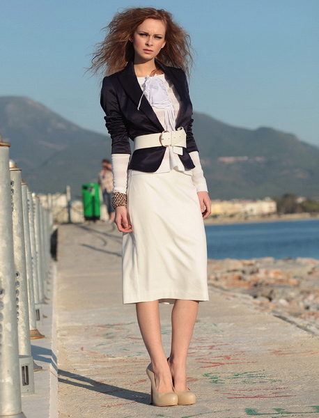 In a business wardrobe, it is better to wear it with straight and flared dresses, mini and maxi skirts, pencil skirts.