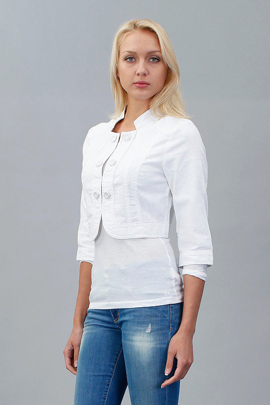 The style of this jacket is advantageous for girls of short stature. He will not overload the silhouette, but on the contrary, will emphasize the fragility and refinement of the figure. It is advisable to choose a lower layer (shirt or blouse) of a different shade, this technique will visually add to your height.