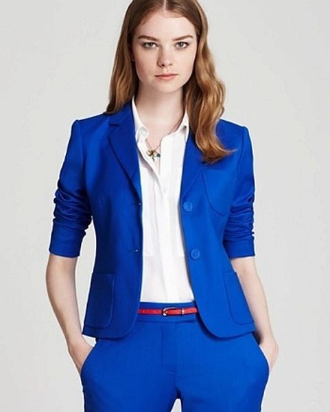 Blue jacket is very popular among young girls. He looks feminine and elegant, but at the same time, gives a strict image. This color is suitable for work and study, can complement the everyday bow.
