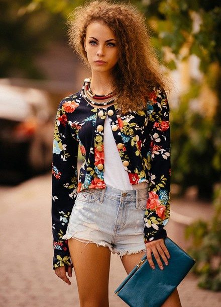 A floral print jacket is an absolute favorite of the current season. Both classic elongated models and short-sleeved cropped are popular. The product with a floral print will be an excellent complement to the day and evening look, will give a new life to a monophonic dress or pants.