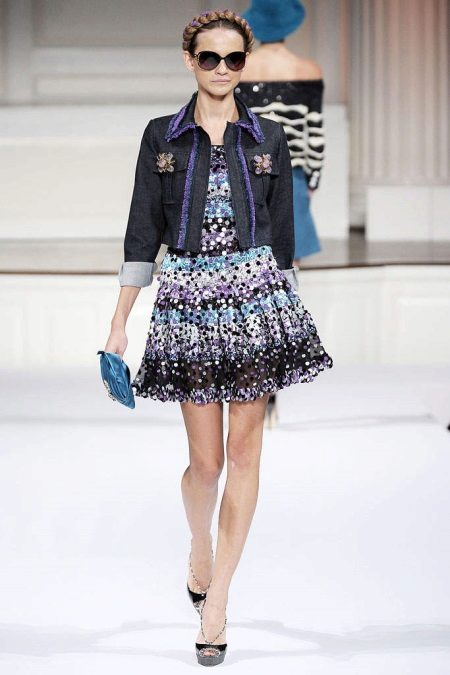 A cropped jacket, worn over the dress, is suitable for a party or a date. Model with short sleeves can be worn to work and wear at parties. It is combined with trousers and skirts, will look good with a sleeveless dress.