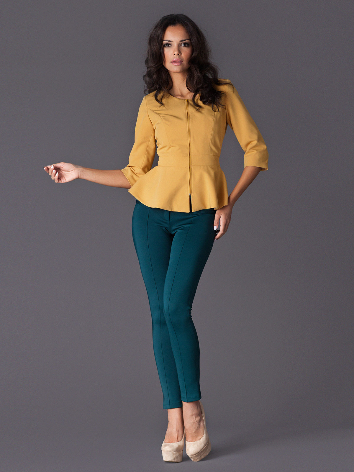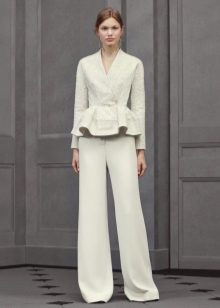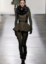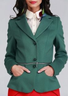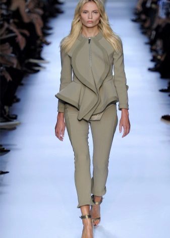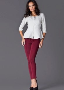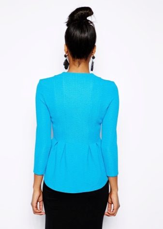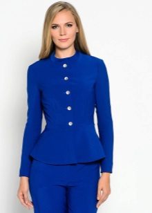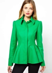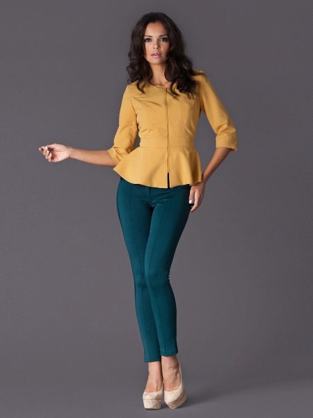 Women with lush hips are recommended to try on models with large or elongated basques. This style allows you to visually adjust the figure, it is advantageous to emphasize the advantages and hide its flaws. This jacket will look great with classic trousers straight cut.