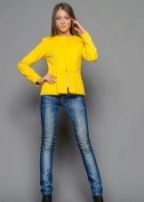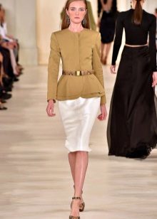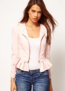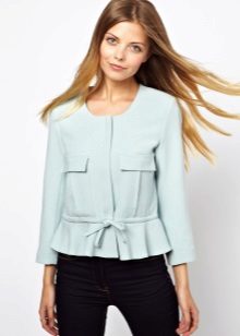 Most often, a jacket with a basky is sewn from a dense, costume fabric. But models from cashmere, suede, boucle, fine wool, etc. look no less impressive and stylish. Now at the peak of popularity is a jacket made of lace fabric. This jacket is suitable for both the youngest girls and women of elegant age.