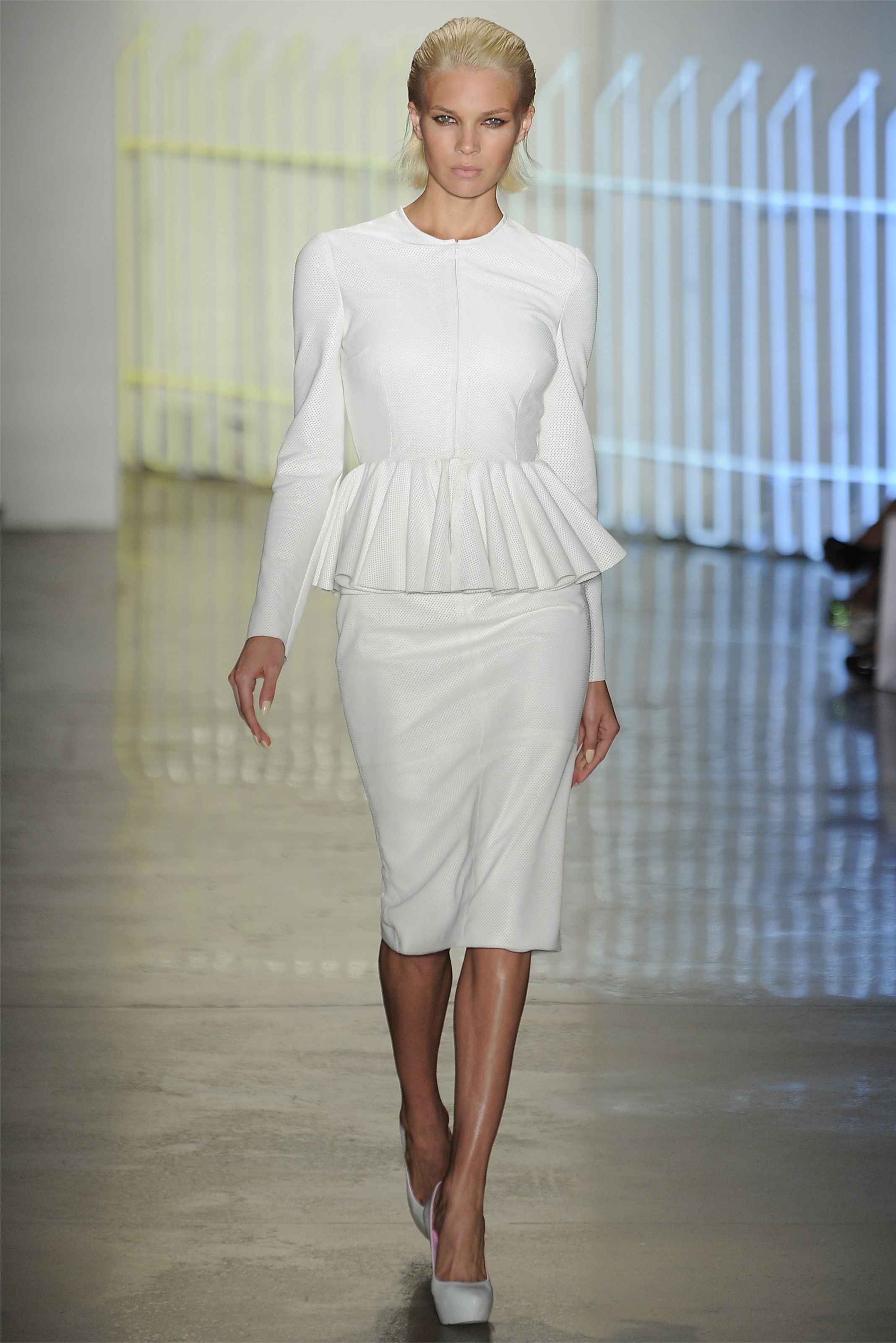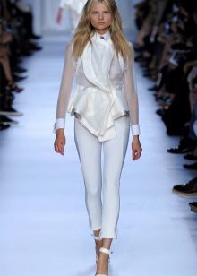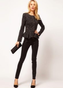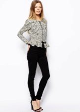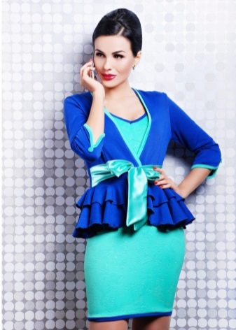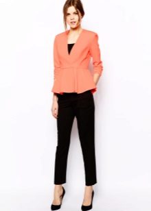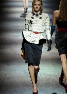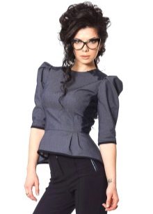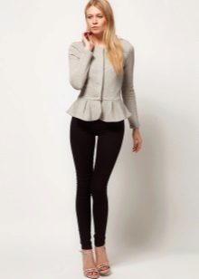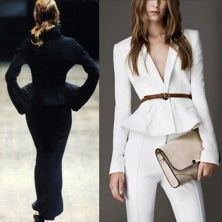 If a jacket with a basque is part of a business suit, then the color scheme should be designed in a classic style. Black, white, light gray are traditionally used for formal wear. The jacket, made in a combination of black and white, looks very stylish and unusual.