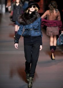 For a less formal style to such a jacket, you can pick up fitting jeans in classic colors. This set is perfect for elegant boats.