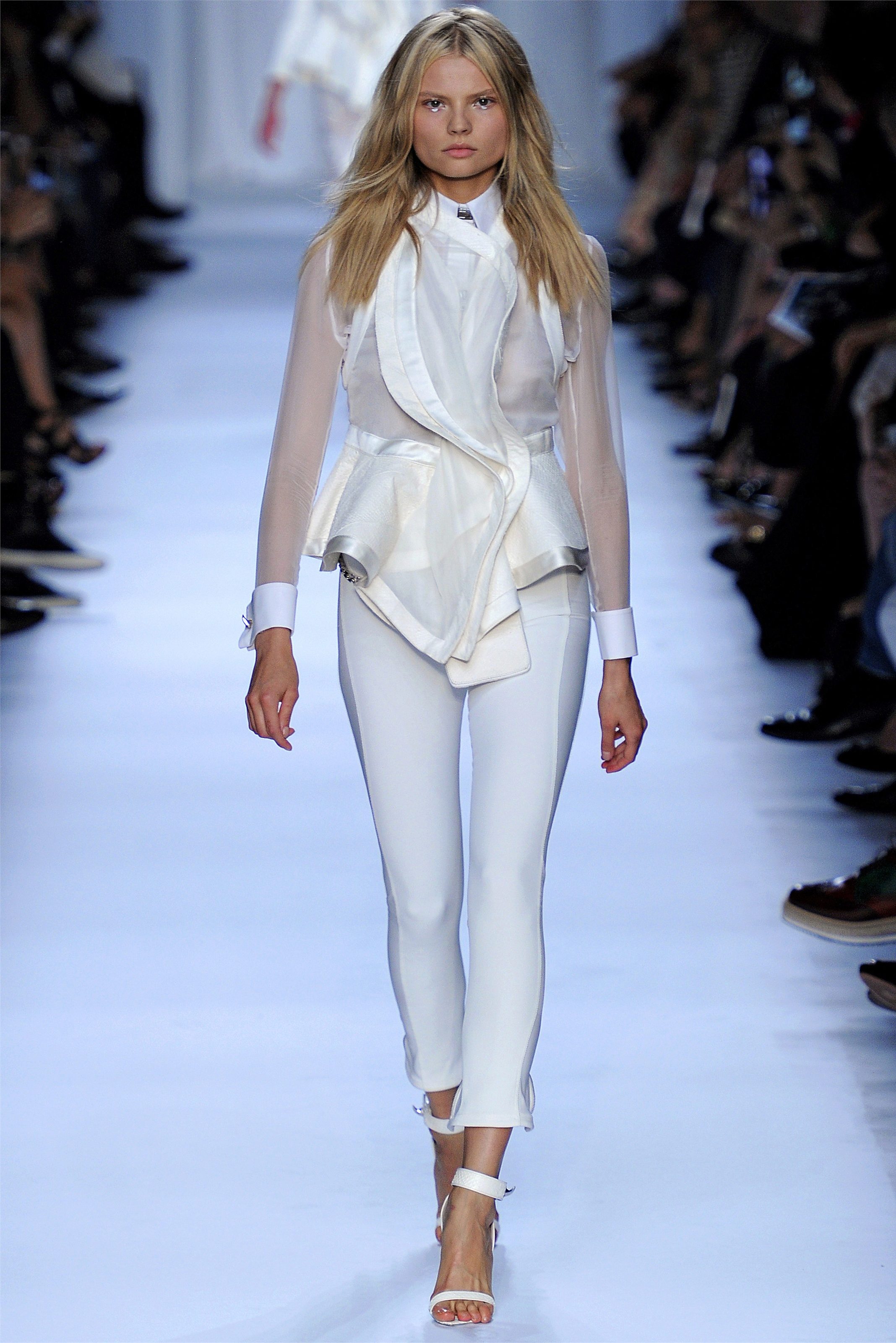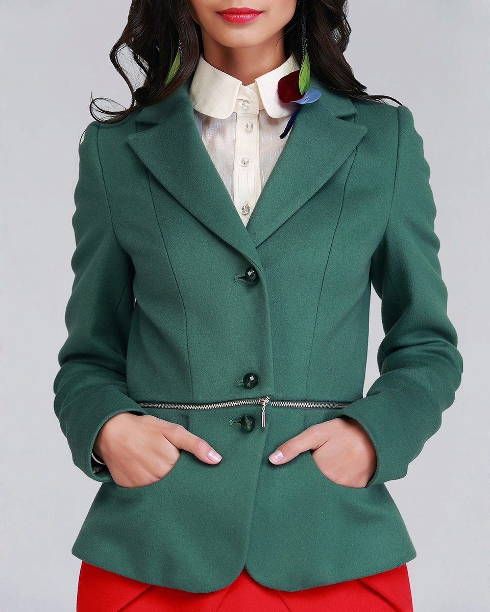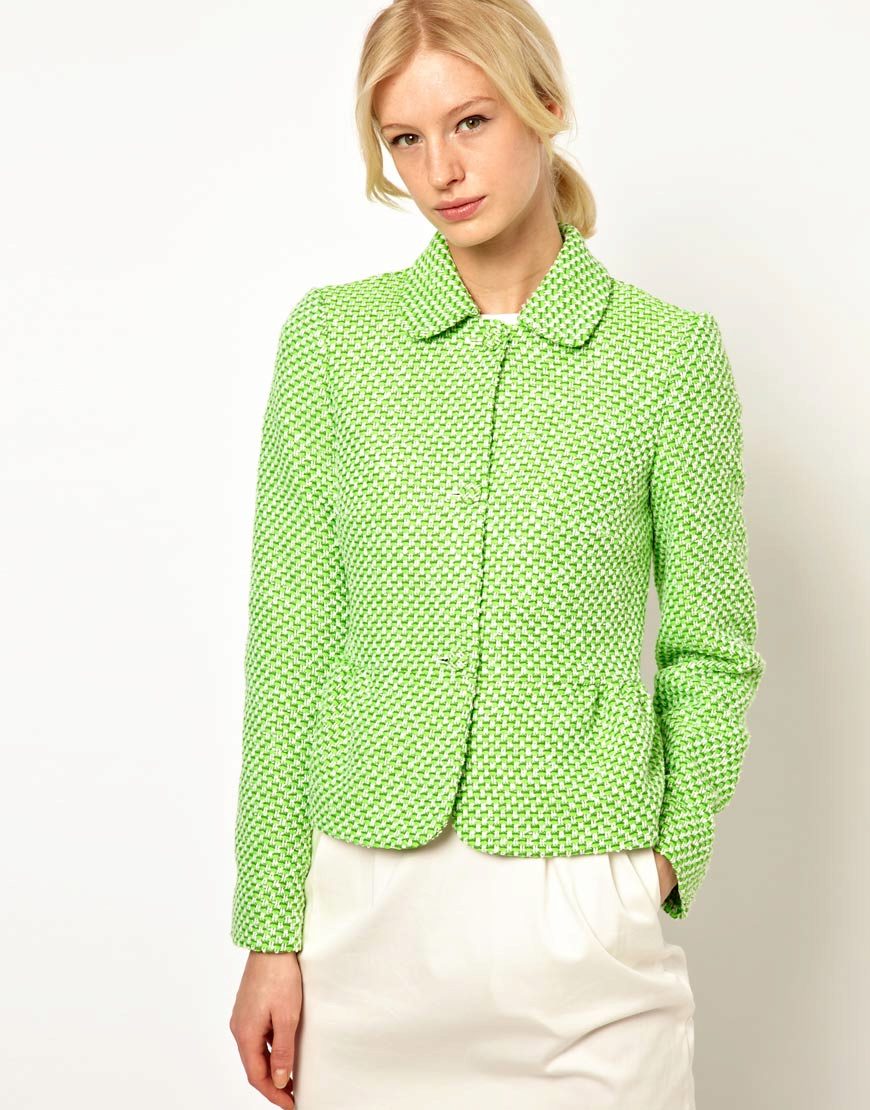 The jacket is associated primarily with a business suit. Therefore, it goes well with classic trousers, a strict dress and a straight skirt. Complement a strict image of classic shoes with heels.