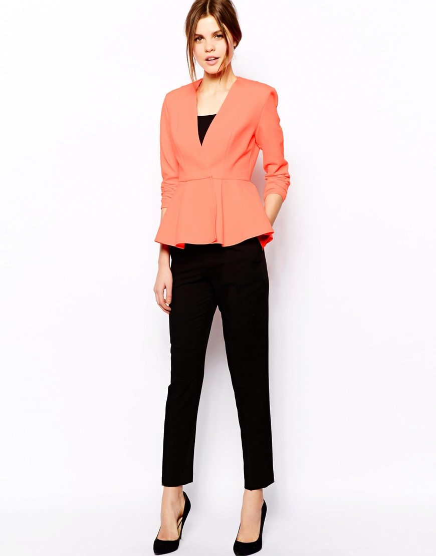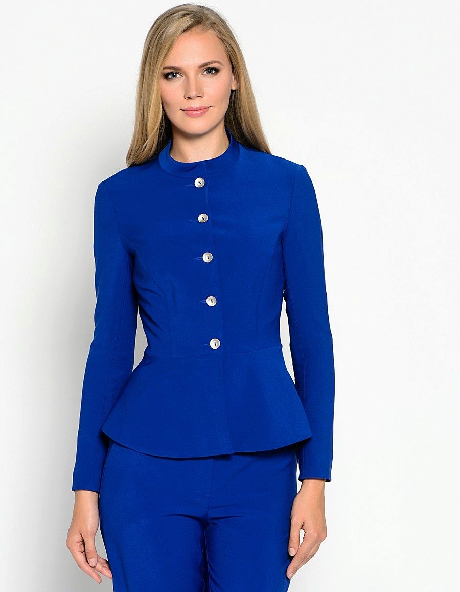 A jacket with basque will certainly suit ladies who prefer a romantic and elegant business style in clothes.