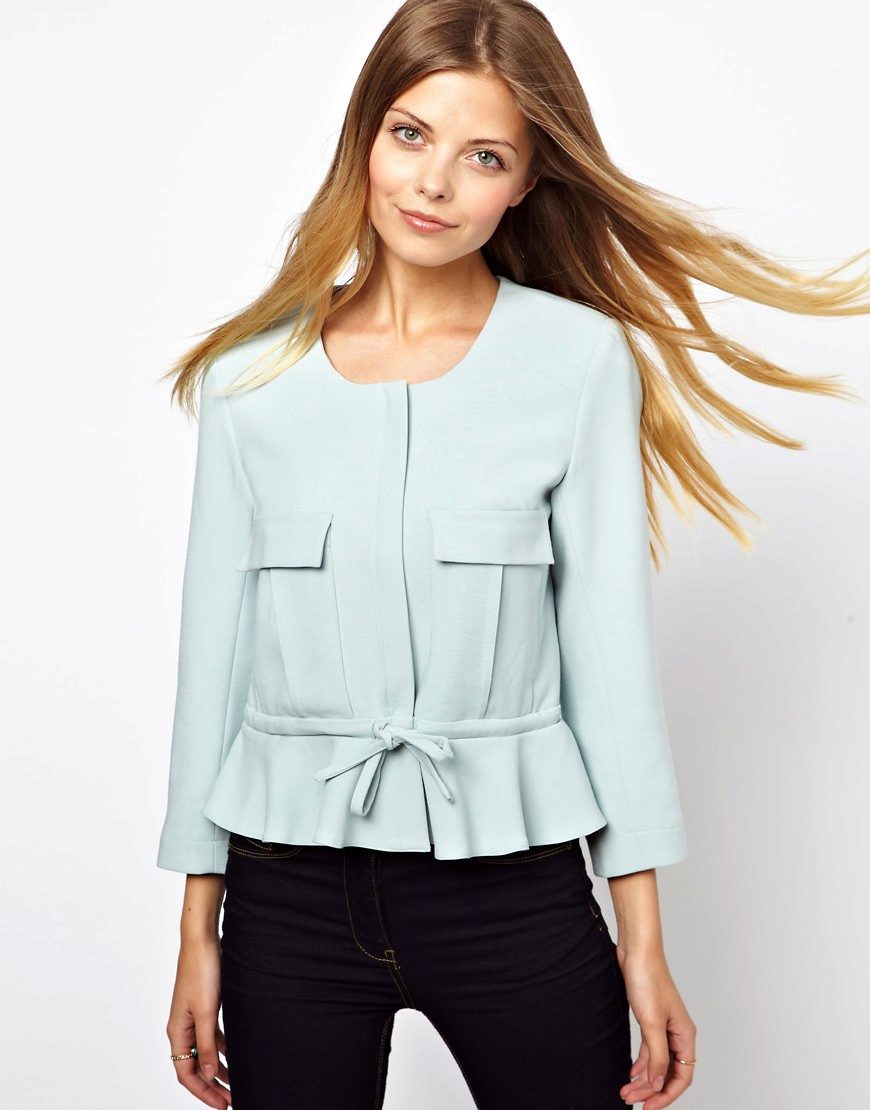 To create a casual look, you can choose a jacket of gentle tones - light blue, pale green, sandy, pale pink, mint, peach or flesh-colored.