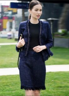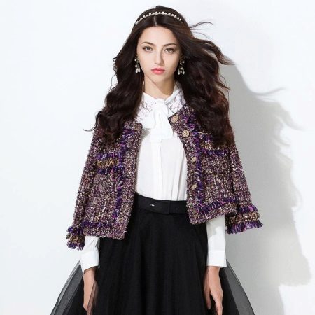 Each season, designers present new styles and models of tweed jackets, because they are always in trend. They offer a different length, the shape of the collar or without it, and also decorate jackets with inserts of other fabrics.