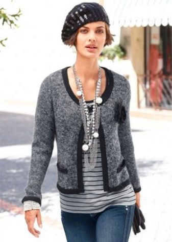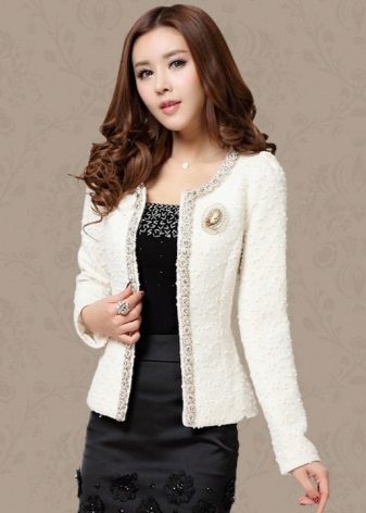 Tweed jacket can be decorated with stylish accessories to make it unique and charming. For example, a single-colored model can be decorated with a large brooch or massive beads. But tweed jackets with a bright print do not need additional accessories.