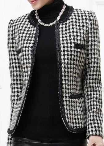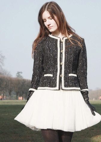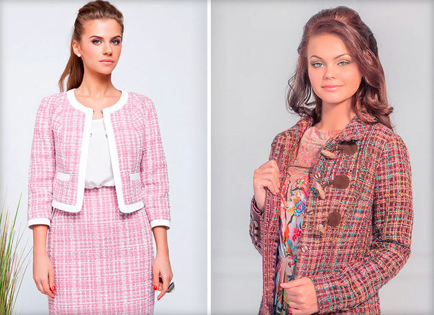 Chanel-style knitted jackets look as elegant as tweed ones. That's because tweed yarns are similar to woolen yarns. Products are ideal. They sit perfectly on the figure, and this is important in the jacket of Chanel.