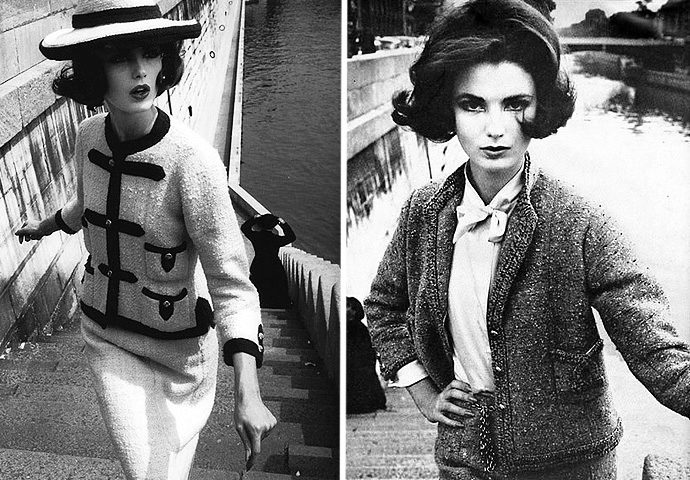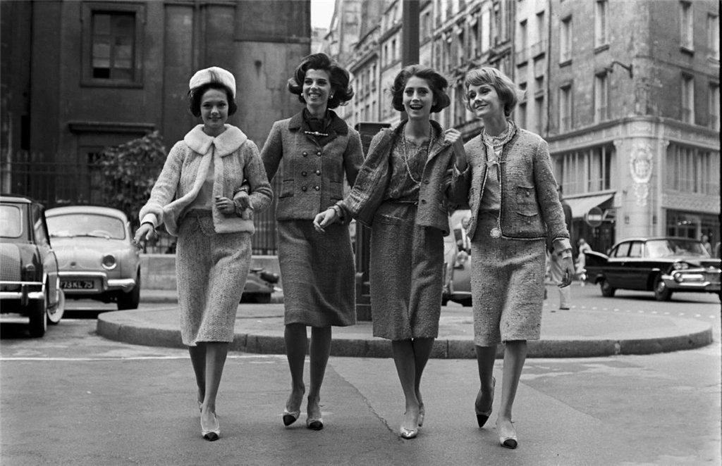 Taking the men's jacket as a base, in 1916, Koko Chanel added 4 pockets to it. She chose tweed as the material.