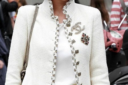 Coco Chanel style implies elegance. Therefore, in a jacket with short sleeves, you can easily show off your jewelry in the form of bracelets or expensive watches. Koko herself (Gabriel) loved bracelets and demonstrated them with a touch of elegance.