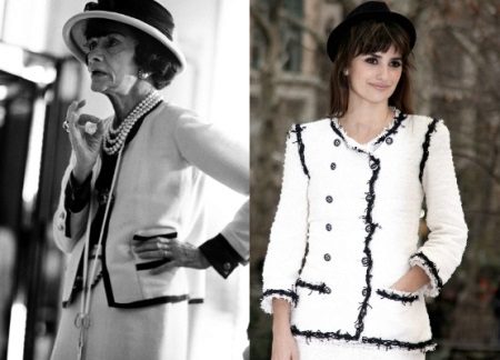 Buttons of golden color with the Chanel house logo will become a characteristic sign of her jacket a little later. But the edging in the form of a pigtail on the side of the side of the jacket Koko borrowed from the hotel staff.