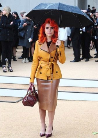 - Red. Red color in clothes looks no less impressive than yellow. When choosing accessories, shoes and accompanying clothes, it is important not to overdo it with decor and bright make-up so that the created image does not look vulgar.