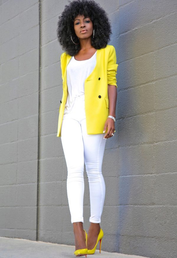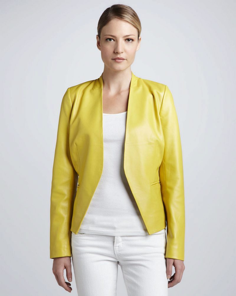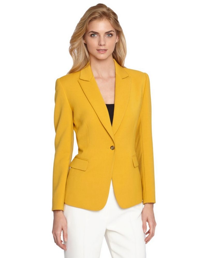 Owners of a warm color type can try on a jacket of almost any shade of yellow. The lighter the skin, the lighter shades should be chosen (champagne, lemon, golden, cream, etc.). Burning brunettes can be guided by the brightest, rich tones (saffron, ocher, amber, mustard, etc.).