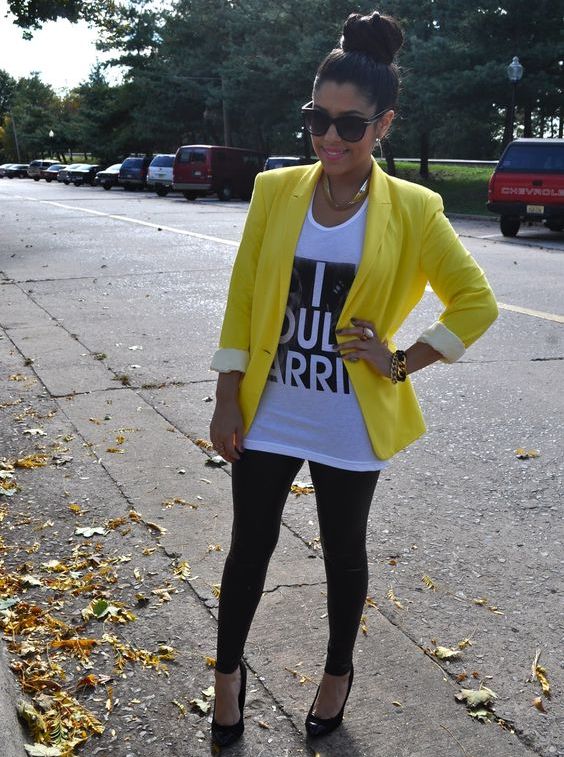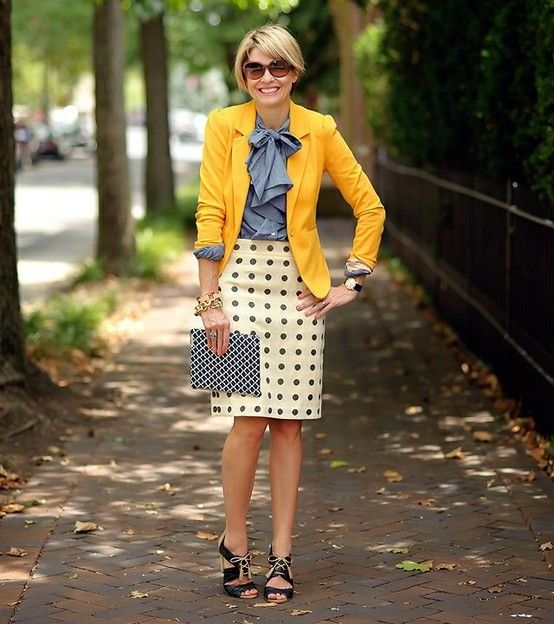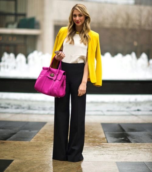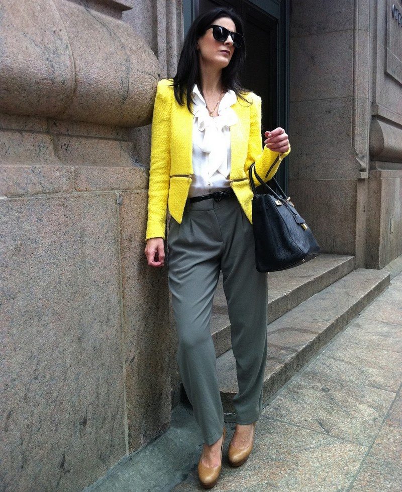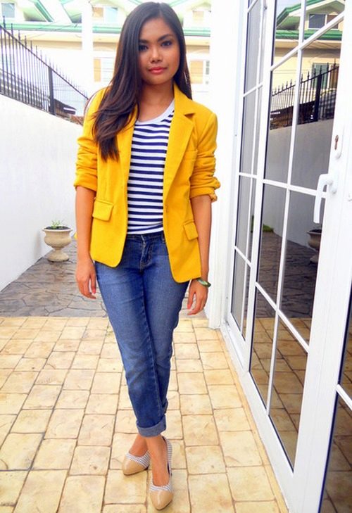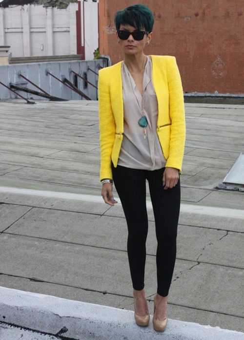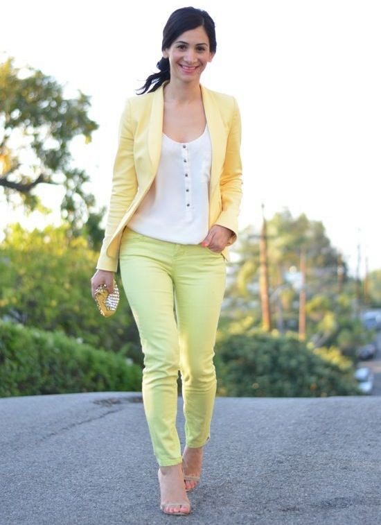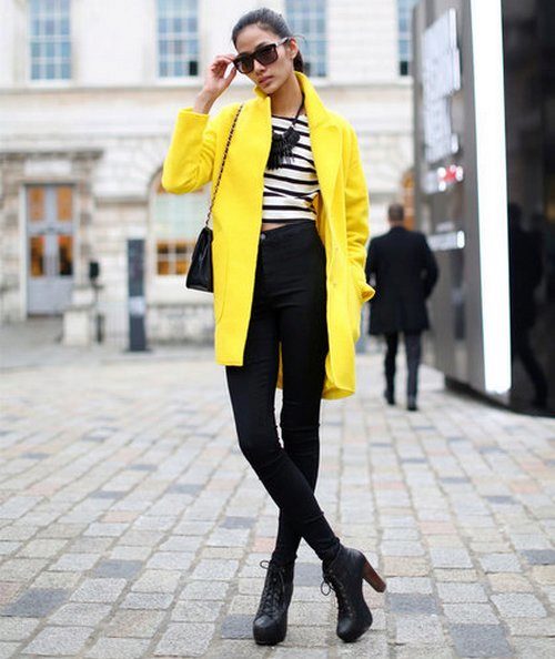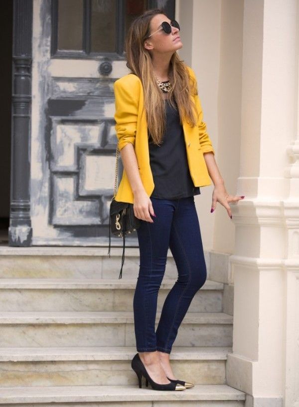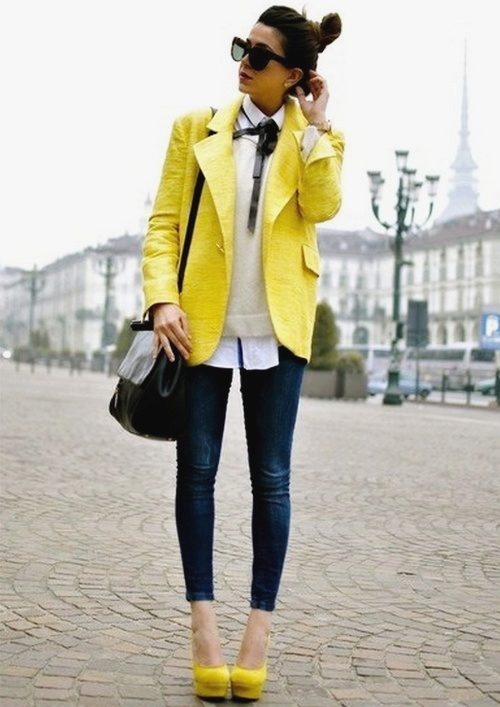 Yellow - the color of the sun, it belongs to the palette of warm colors. It should be used with caution to representatives of the cold color type of skin. It is best to choose jackets in greyish or bluish shades of yellow. To make the image look more expressive, the rest of the clothes must be kept in bright, saturated colors.