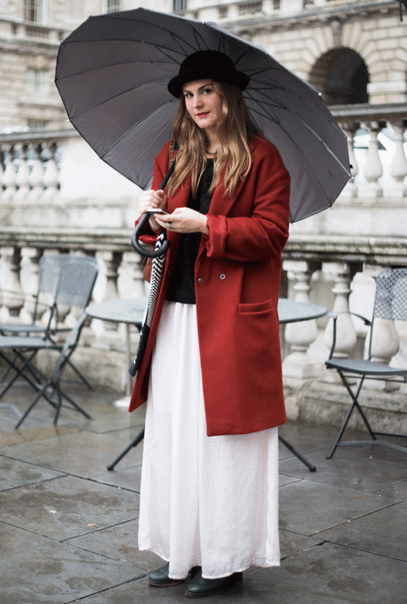 A classic umbrella in the form of a cane will perfectly fit into an office outfit for a woman, as well as fit a men's suit. This accessory has, as a rule, a large dome, and it is able to protect it as much as possible from the weather. However, due to its size, the umbrella cane is not always convenient. For greater comfort, such models usually have a hook-shaped handle so that an umbrella can be hung on a hand or a hook. Usually canes have a more reliable mechanical method of addition, however, it is possible to meet models of automatic.
