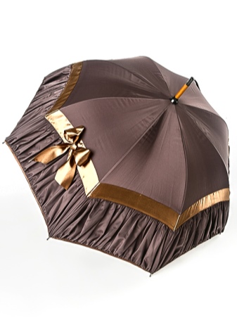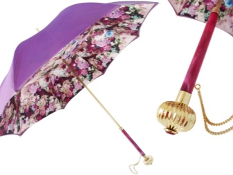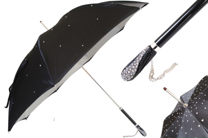 In addition, sometimes the domes of umbrellas are richly decorated with rhinestones, crystals and stones, which will not allow the model to compactly fold. Such decor is used most often on canes.