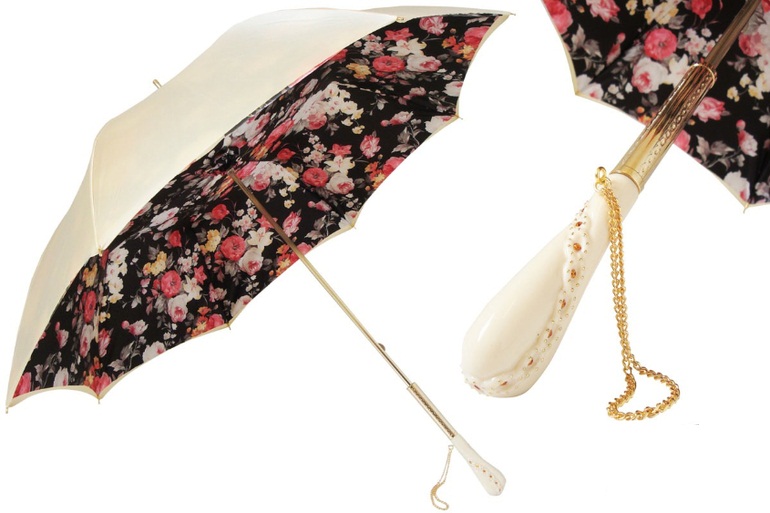 Umbrellas of the elite or luxury category are made of natural expensive materials, including precious woods, silk, precious stones and even tortoise shell. Such models are, rather, a real museum rarity than a daily accessory.