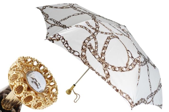 Expensive umbrellas are a separate category of accessories, for the manufacture of which designers and manufacturers use the most expensive and unusual materials. Hence the high price tag. For example, the cost of an umbrella decorated with Swarovski crystals from the Pasotti brand is about $ 360. A model Hotel Il Marchesato, made of natural silk and decorated with rhinestones - about 400 dollars.