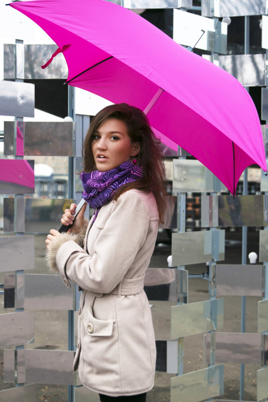 As for the color scheme, the umbrella does not necessarily match the tone of clothing, it can be a neutral color, or in the same shades as the handbag or shoes.